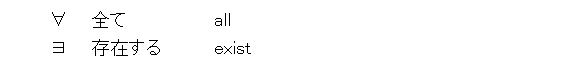 なお、論理記号を日本語で読むと、つい、日本語の読み方による意味にとらわれてしまい、変な解釈になってしまうため、英語で読んだ方がいいかも。英語なら意味が解らないから。あっ、それは俺だけか。