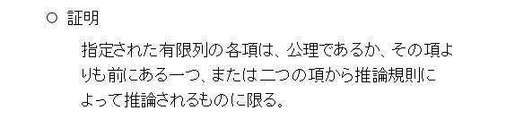 最後は証明です。証明を、次の条件を満たす論理式の有限列であるとします。