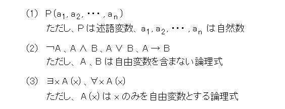 (4) 述語変数P( x1 ,x2 ,・・・,xn ) の x1 ,x2 ,・・・,xn のところへ、自然数の代入を許す。
