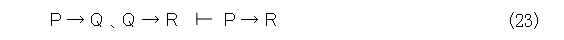 このことを、式(23)のように書いて、「PならばQと、QならばRとから、PならばRが出る」とか、「PならばQと、QならばRとから、PならばRが導かれる」と読みます。