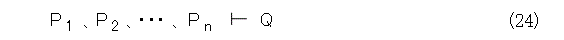 もっと一般的に、論理式Qが、論理式P1 、P2 、・・・、Pn (この中に不要なものがあっても構わない)から導かれるということを、式(24)のように書きます。