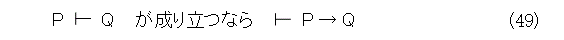 平たくいえば、式(24)で導入した記号の、左辺が原因とか仮定で、右辺が結果とか結論です(なんか、どっかで同じ話があったような)。式(25)は、公理だけから導かれるということで、つまり、何も仮定しなくても出てくるということですね。