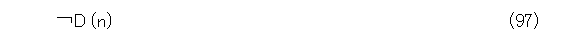 いつものように、D(0) 、D(1) 、D(2) 、・・・ が全てL* で証明可能であるにもかかわらず、式(94)がL* で証明可能でないとします。このとき、その否定は証明可能になるから、式(95)がL* で証明可能になります。