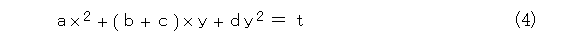 式(3)を定数 t とおけば、式(4)のような2次曲線の式になりますね。