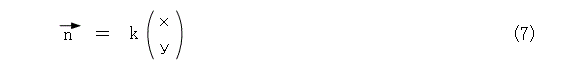 それでは、式(16)と式(8)から、法線ベクトルを求めましょう。この際に、ベクトルの方向だけが問題なので、大きさはどうでもよくなります。