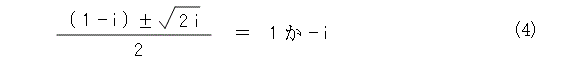 ここで、もし、2次方程式の解の公式が、複素数を係数とするときも使えるとするなら、式(3)は、 1 、 - i になるはずです。