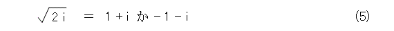 式(5)から、どうやら、複素数の平方根も、一方を a とすると他方は - a と書けるようですね。つまり、 2 i の平方根は、 1 + i と、 - 1 - i です。どちらを平方根号として取ればよいのでしょうか。