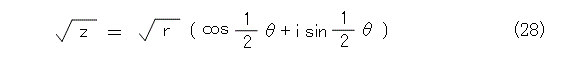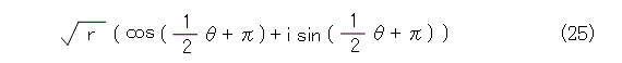 式(24)と式(25)とで、 θ を 0 、 π とおいて、式(27)と合っているのは式(24)の方です。したがって、複素数の平方根号として取るのは式(24)です。すなわち、式(28)です。