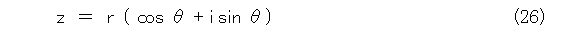 こう書くと、ここで破綻する人がいたりします。これ、そのまま数値を代入したのでは、何をやってるかが解かりづらいため、ちょっとした芸当が必要です。まずは、式(18)を式(26)のようにおきます。