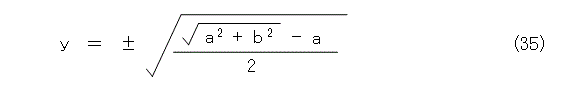 しかし、式(33)の方は、そう簡単ではありませんね。式(33)は、 b の符号によって x と y の符号が制約を受けます。 b が正のときは同符号を選び、負のときは異符号を選ばなくてはなりません。