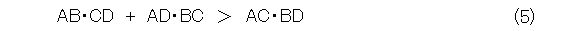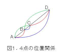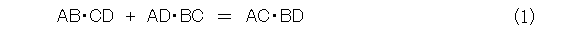 実際どういうものかといえば、4点A、B、C、Dが一直線上に、この順序で存在するときに、式(1)が成り立つというものです。