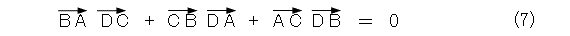 このときに、2組の対辺が垂直ならば、残りの1組も垂直となることは、式(7)から出てきます。例えば、線分ABと線分CDが垂直、線分BCと線分ADが垂直ならば、線分ACと線分BDも垂直になるということです。つまり、点Dは三角形ABCの垂心です。