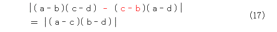 4点A、B、C、Dが8の字回りに配置されている場合は図15のようになります。このときも図14と同様に式(23)は成り立ちません。