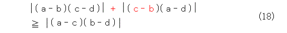 かなり式(1)似たものが出てきました。違いは不等号がくっついていることです。こう書くと、「何が似ているだ。第3章の最初で、正四面体では不等号になって挫折したじゃないか。等号がちょっと付いているだけで、どういうつもりだ。」と文句が出るかも知れません。その辺の言い訳を少し考えなくてはいけませんね。