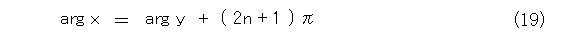 さて、式(16)が成り立つのは、図10の右側の図だから、複素数の偏角が式(19)のようになります。もちろん、 n は整数です。(以下、この手の注意も書かないので、自分で考えること)