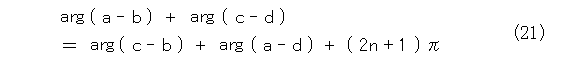 複素数の積は、長さの積と偏角の和なので偏角に注目して、式(21)が成り立ちます。