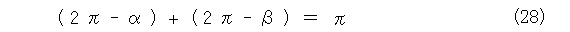 が成り立ちます。これを、四角形の内側の角の関係に変形すると、式(28)となります。