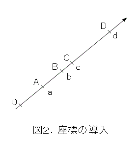 まず、4点A、B、C、Dが一直線上に、この順序で存在するということから、図2のように座標を導入します。