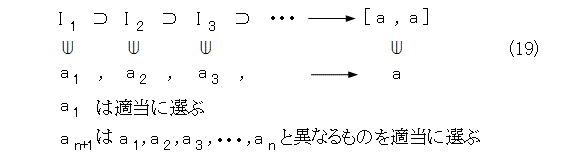 こうすると、式(17)の閉区間列は、縮小閉区間列となり、1点に収束します。このとき、収束する点を a とします。