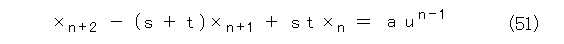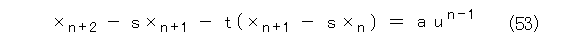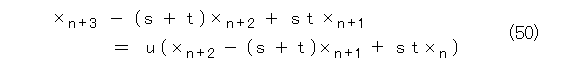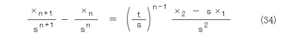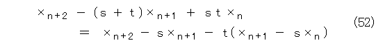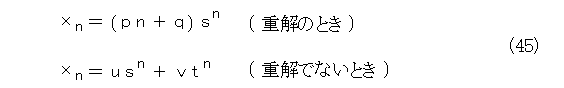 2重解のときは、 s を単解、 t を2重解とし、同様にして、式(53)から操作して行き、一般項は、