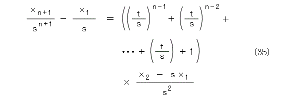 おっと、手抜きして、等比数列の和を求めていないことが祟って(たたって)きました。やっぱり手抜きはいけないなー(いつも手抜きばっかりじゃないか)。それじゃー、ちゃんとやるか。以下の式(36)を考えましょう。