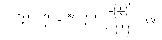 これを解いて、 n を n - 1 に置き換えて式(42)が求まります。