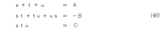 最初は3重解を持つときです。 s 、 t 、 u は全部等しいので、 s に統一しましょう。
