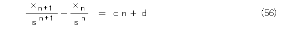 これは等差数列と同じようなものだから式(56)が成り立ちます。