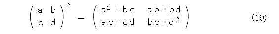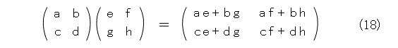 行列のべき乗を計算しようと思っても、行列の積はグチャグチャで、とてもまともに扱えるものではありません。とりあえず、2次の正方行列の積を書いてみましょう。