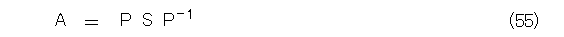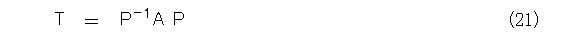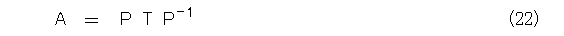 Aについて解くため、式(21)の両辺に、左からPをかけ、右からP-1をかけると式(22)となります。