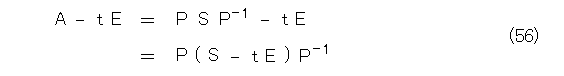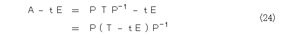 さて、今のところ何の手がかりもないので、とにかく何かやってるフリだけはしてみましょう。問題の対角行列は、単位行列のスカラー倍からどの位かけ離れているかを考えましょう(こんなダメっぽいことするのは、手詰まりでやけくそになってるから)。とりあえず、単位行列のスカラー倍を引いてみます(この評価をするなんらかの基準が必要になるだろうな)。つまり、式(22)の両辺から t E(Eは単位行列)を引いて様子を見ましょう。