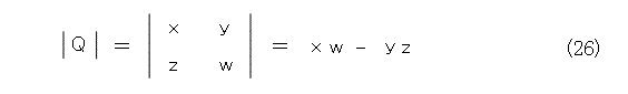 ここで、行列式というのは、行列Qに対して、式(26)のように成分による計算値を対応させることです。