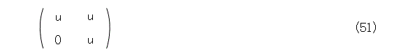 対角行列は、対角成分の他が 0 でした。具体的には、12成分と21成分が 0 です。少しゆるめて、どちらか片方のみ 0 としてみましょう。どちらでも同じなので、21成分を 0 とします。そうすると、たとえば、式(48)のような行列です。