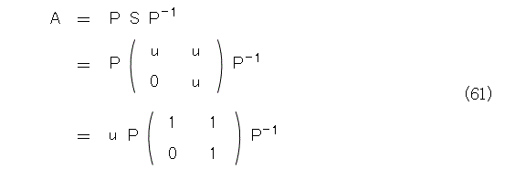 式(32)と全く同様の式が現れました(固有方程式)。違いは、 u を重解(固有値)としている点です。この場合も、式(53)のただし書きから、解は 0 ではありません。