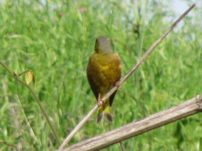 今度は、恐怖の顔なし妖怪のっぺら鳥だ。そもそも、ちび鳥は、ドブガモみたいな中型鳥より、撮影がはるかに難しい。ちょこまか動き回って、すぐ逃げるし、小さいから、より近づかないとピントが合わないし(小さいので、自動焦点機能がちゃんと認識しない)、やっぱり偶然近くに来たときじゃないと撮れない。丁度、カワラヒワと思われるちび鳥が正面にいたが、シャッターを押した瞬間に後ろを向きやがった。こいつ、性格がワリー。