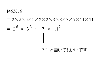 ![]() ところで、2、3、5、7、11、13、17、19、23、29といった数の約数を求めてみましょう。これらは1とその数自身の2個だけしか約数がありませんね。これら、約数が2個だけしかない数を「素数」といいます。計算練習のため、1から100までの素数を全部求めてみるといいです。