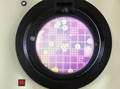 がついている箱型で気密性の高い培養装置を使い、箱の前面に取り付けられている酸素