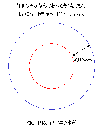 赤道に1m継ぎ足して、半径がrだけ大きくなるとすれば、