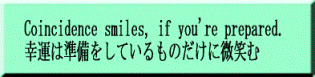 幸運の神様は、「その時」に備えて常に用意された人にのみ訪れる。持続する心構えが可能性を引き出すチャンスを生み、行動を促す。多くの成功は偶然による。一方で、偶然は行動によって引き起こされる。