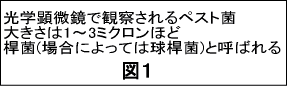 この病気の病原体は(図1)、大きさ1?3ミクロンほどの細菌で、日本人の北里柴三郎とフランスのアレキサンドル・エルサンがほぼ同時期(1894年)に発見したとされています。