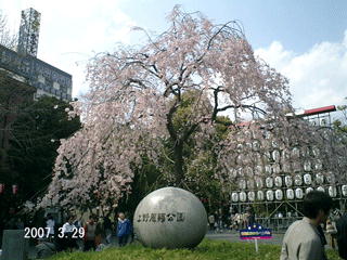 上野公園入り口のシダレザクラ この木の前に早咲きの大寒桜があります(2007年3月29日撮影) |
