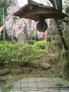 渋谷にある金王八幡社は、渋谷氏の先祖が源頼義の東征のときに、八幡大神を迎えて創建した名高い神社です。この社に源頼朝が渋谷氏の子孫の金王丸に与えたサクラという金王桜があります。このサクラは八重とひとへの花を咲き分ける広重の錦絵にもある銘木ですが、現在の金王桜は何代か後のものです。このサクラは宝泉寺にも戦後植えられた樹が花を咲かせています。金王桜の根方には、芭蕉の句碑があります。