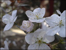 ソメイヨシノは、江戸時代の末に染井村(現在の駒込あたり)の植木職人達が育成したものです。オオシマザクラとちがって、葉が出る前に花が開いて満開になりますから、花が豪勢に見えます。花はエドヒガンより大きくて、今ではサクラの主流になっています。サクラの開花予想もこの花を基準にして発表されています。しかし、オオシマザクラやヤマザクラやエドヒガンに比べて短命で、最盛期は50年から60年くらいです。