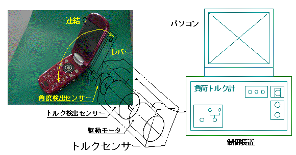 図3 負荷トルク計による携帯電話の開閉トルク測定原理図