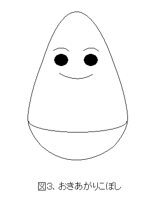 「おきあがりこぼし」というものをご存知でしょうか。基本形はたまご型に、人の顔が書いてあるものです。