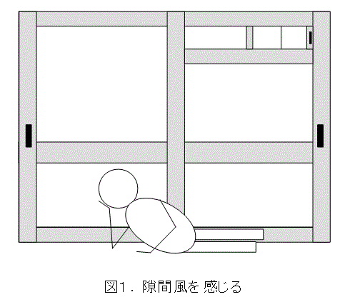 窓際でごろ寝しているときに、背中に隙間風を感じたことはないでしょうか。隙間風を感じた経験のある人なら、大体、窓枠の下の方から入って来るように感じたはずです。ただし、日中、陽が入ってきているような場合、ぽかぽか暖かく実験になりませんので、夜とか、曇りの日に窓際でごろ寝をして実験した方がよいでしょう。この際に、外で風が吹いているかどうかはあまり影響しません。