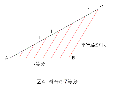とりあえず、例として、線分を7等分割しましよう。