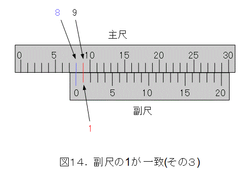 では、目盛線が一致したところから何がいえるのかを考えましょう。図14のような場合です。