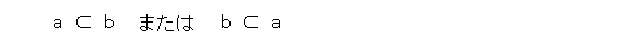 が成り立つとき、 a 、 b は比較可能であるといいます。普通に考えて、集合では比較可能にならないものがあります。第1図のような場合は、どちらも互いに含まないので、比較可能にはなりませんね。