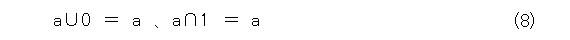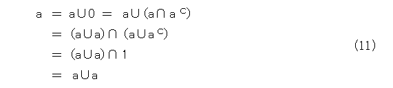 ここで、式(5)〜(9)をよく見ると、合併集合と共通集合を入れ替えて、更に、 0 と 1 を入れ替えても式が全く変わりません。これは「双対的」という性質で、手抜きに使えるが、これも省略。